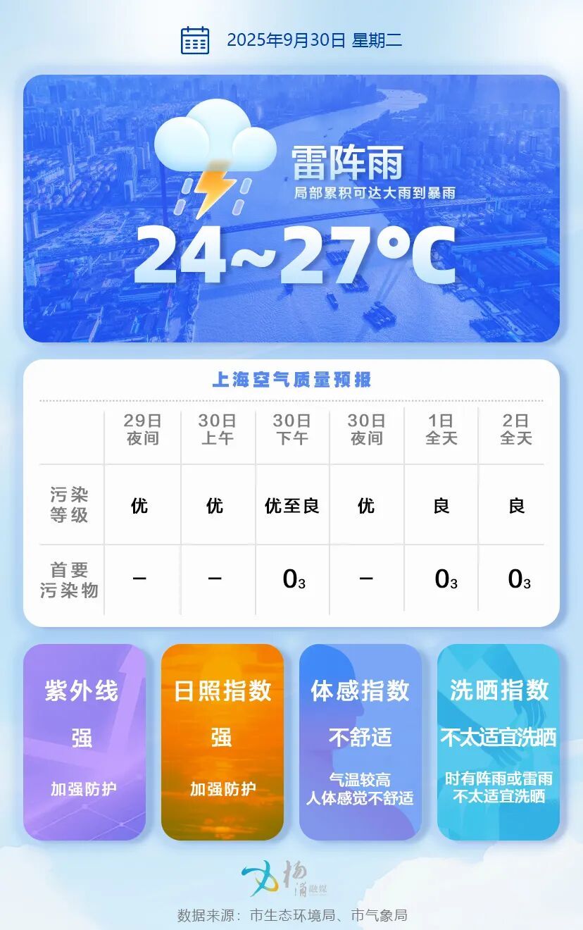 今天阴有时有阵雨或雷雨,局部地区雨量可达大雨到暴雨,夜间降雨停止。偏南风3-4级,雷雨时阵风7-9级,风向偏北。今天最高气温27℃,最低气温24℃,体感比较清凉,相对湿度70-90%。