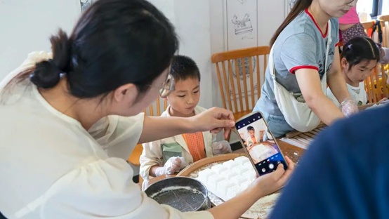 活动还融入了青浦非遗体验。亲子家庭共同了解“焋糕”传承的历史,并在村里阿婆的指导下亲手制作传统米糕,将蒸好的美味带回家与亲人分享,真正实现“满载而归”。