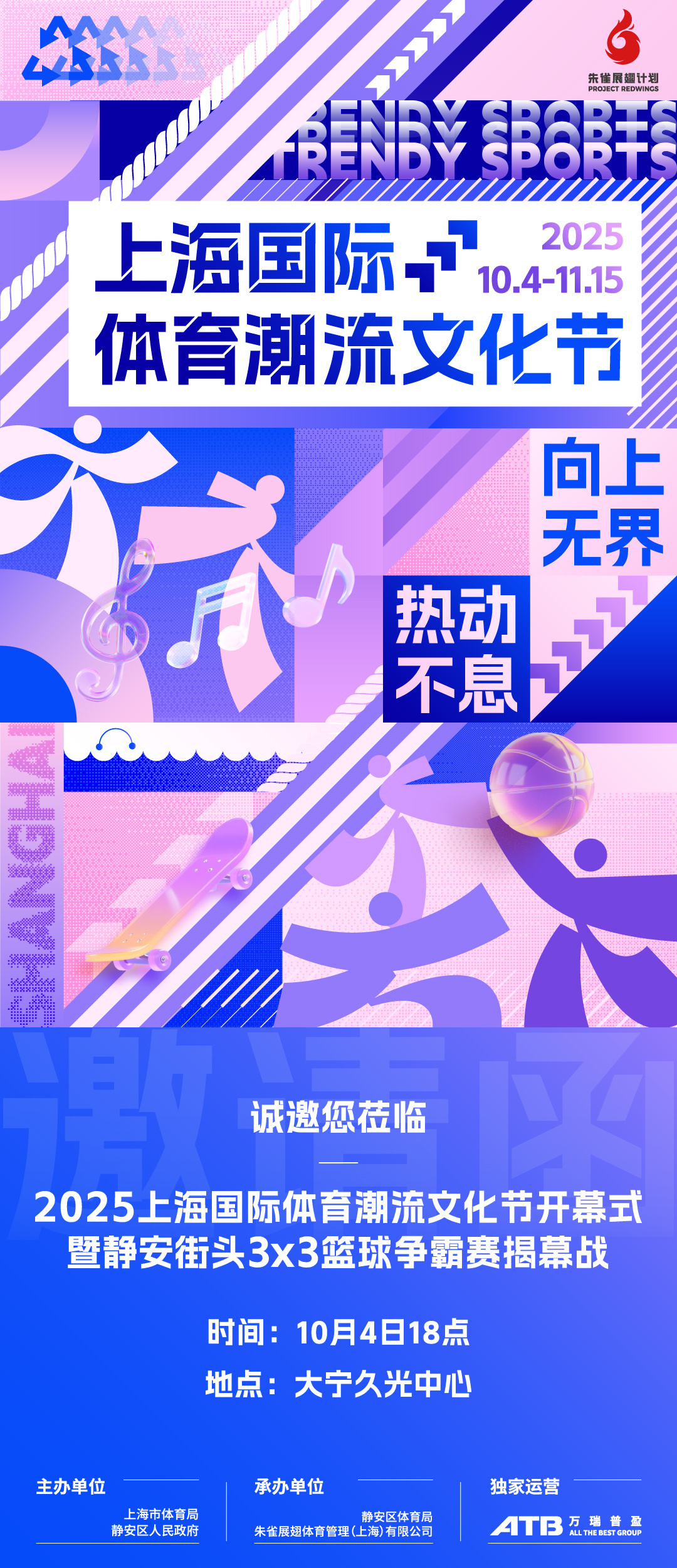 秋意渐浓的申城,以“热爱不息,向上无界”为主题的2025上海国际体育潮流文化节即将拉开帷幕。继2024年首届文化节成功打造“我们天生向上”的城市运动热潮后,本届文化节在内容板块、跨界联动与国际化程度上全面扩容升级,旨在积极落实《提振消费专项行动方案》和《关于释放体育消费潜力进一步推进体育产业高质量发展的意见》精神,助力上海国际消费中心城市建设和静安区文旅商体展深度融合发展。活动将自10月4日正式开启,持续至11月16日,横跨国庆黄金周与“双十一”消费节点。