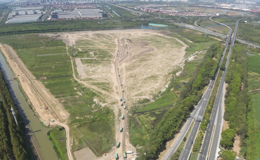 海上玉环空间意向图 书院镇全域土地综合整治项目以书院水乡、滨海田园为主题,发展现代农业、文化创意、休闲旅游、特色栖居等产业,打造居民向往的梦想型特色水乡栖居地。今年已整修菜田11.7公顷,建设完成灌溉系统、田间道路、生态停车场等配套设施。预计年底前将完成试点工程,有效提升区域内农田生产能力和生态景观,推动生态保护与农业生产协同增效。 蔬菜大棚改造前实景图 蔬菜大棚改造后实景图 申港彩林项目以森林为媒介,联通优化水系,打造日常可达的郊野游憩目的地。项目多样化的地形为南汇新城工程土方综合利用提供了重要的消纳空间。今年以来,申港彩林土方工程项目顺利推进,共消纳土方76万吨,全年预计可消纳151万吨,优化空间环境品质的同时充分发挥了渣土的资源价值。 申港彩林设计鸟瞰图 申港彩林土方消纳建设实景图 随着绿环项目的不断推进,到今年年底,南汇新城预计将完成水脉建设约5公里。申港彩林节点土方工程将全部完工,同步启动造林工程,进而有效增强区域生态环境承载力,释放南汇新城生态价值。