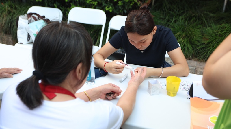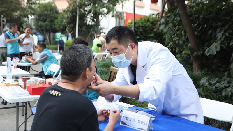 在金融咨询摊位前,专业人士向居民们宣传反诈知识和金融安全知识,帮助他们更好地保护个人财产。口腔义诊摊位前,医护人员细心为老年群体量血压、测血糖,并耐心讲解口腔护理技巧,获得群众交口称赞。