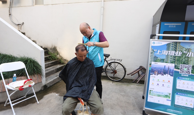 在理发摊位前,师傅手法娴熟,技艺出众,居民朋友们有序排队,以崭新的面貌喜迎双节。
