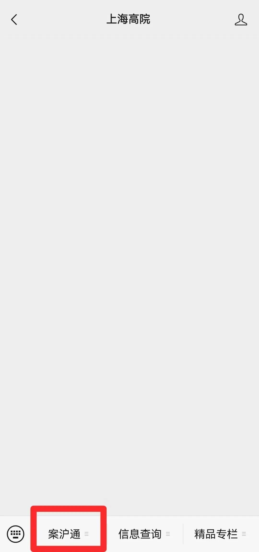 搜索或扫码关注“上海高院”微信公众号或“上海法院12368”微信公众号,选择“案沪通”入口。