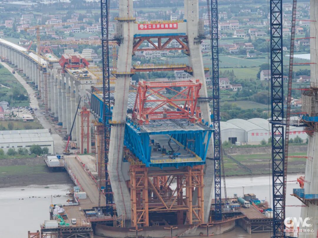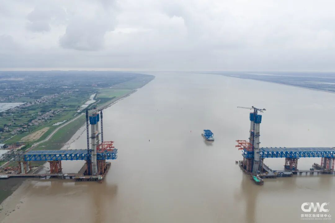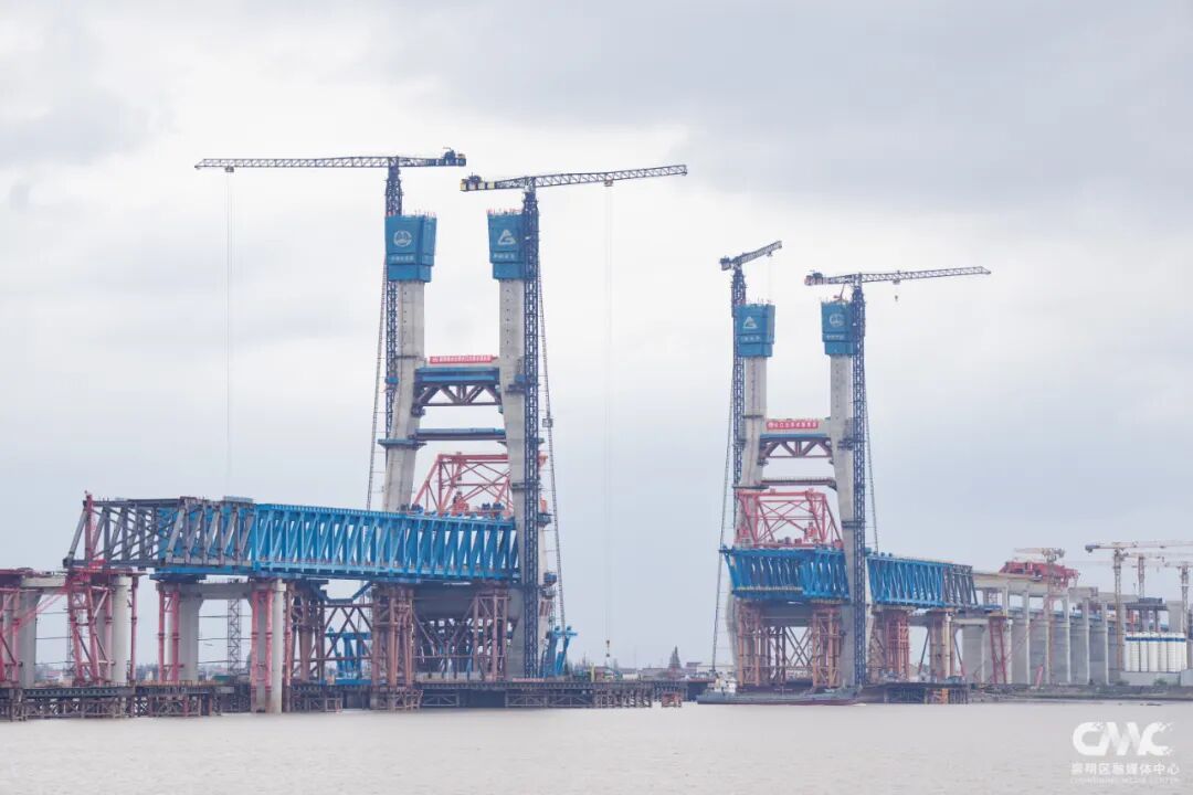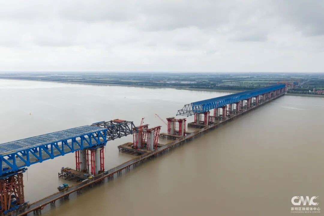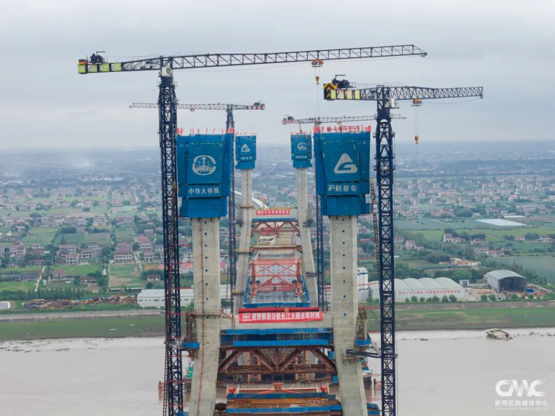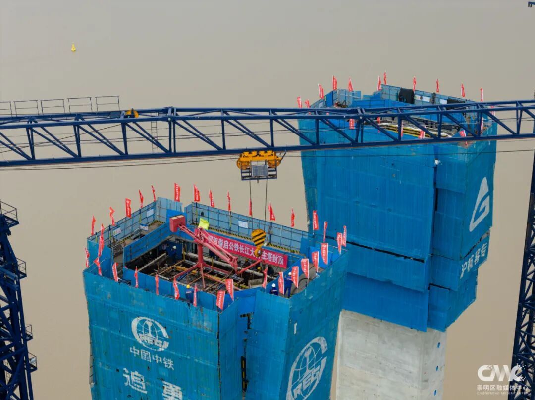 9月29日,沪渝蓉崇启公铁长江大桥3、4号主塔同日实现封顶,至此,主通航孔南北两座主塔主体施工全部完成,建设者用实干成果献礼国庆。 在长江入海口北支航道,沪渝蓉崇启公铁长江大桥施工现场,随着最后一方混凝土从大桥3号墩和4号墩施工平台同时泵送至153米高的塔顶,崇启大桥两座主塔同日封顶,这也标志着主通航孔南北两座主塔主体施工全部完成。 记者看到,崇启公铁长江大桥在崇明岛与江苏启东之间的两座主塔花瓶形状的形态,已经完整呈现,整座大桥的钢梁顶推工作也近尾声。截至目前,崇启公铁长江大桥已经完成整体工程量的80%。 崇启公铁长江大桥主桥3、4号主塔为H型造型、花瓶式钢筋混凝土塔柱。塔柱立于江水之中,要抵御长年累月江水侵蚀,对施工质量要求极高。 崇启公铁长江大桥设计构造为双层公铁两用无砟轨道斜拉桥,上层为时速100公里的双向6车道一级公路,下层是时速350公里的双线高速铁路加时速250公里的双线城际铁路。大桥建造时首次采用智能压浆技术、增加桩机承载力等控制桥塔沉降,而中铁大桥局自主研发的同步智能顶推平台,让建成后的桥梁更加平顺,因而大桥建成后将成为国内首座高铁过江不减速通道。 预计今年11月,主通航孔桥顶推到位,明年3月,崇明岛和江苏启东侧钢梁实现合龙“牵手”。 崇启公铁长江大桥是我国“八纵八横”骨干铁路――沪渝蓉高铁的控制性工程,全长4.09公里,横跨长江入海口北支航道。主通航孔跨径400米,是目前在建的世界最大跨度公铁两用无砟轨道斜拉桥,也是我国迄今为止长江上时速最快的公铁两用过江大通道。大桥建成后对优化沿长江地区铁路网布局、服务长江经济带协同发展,推动长三角高质量一体化发展等具有重要意义。 记者:蒋晓燕 摄影:张志豪