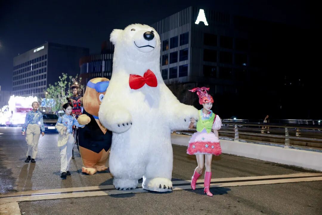 耀雪冰雪世界的“雪嘻嘻”等携手冰雪表演团