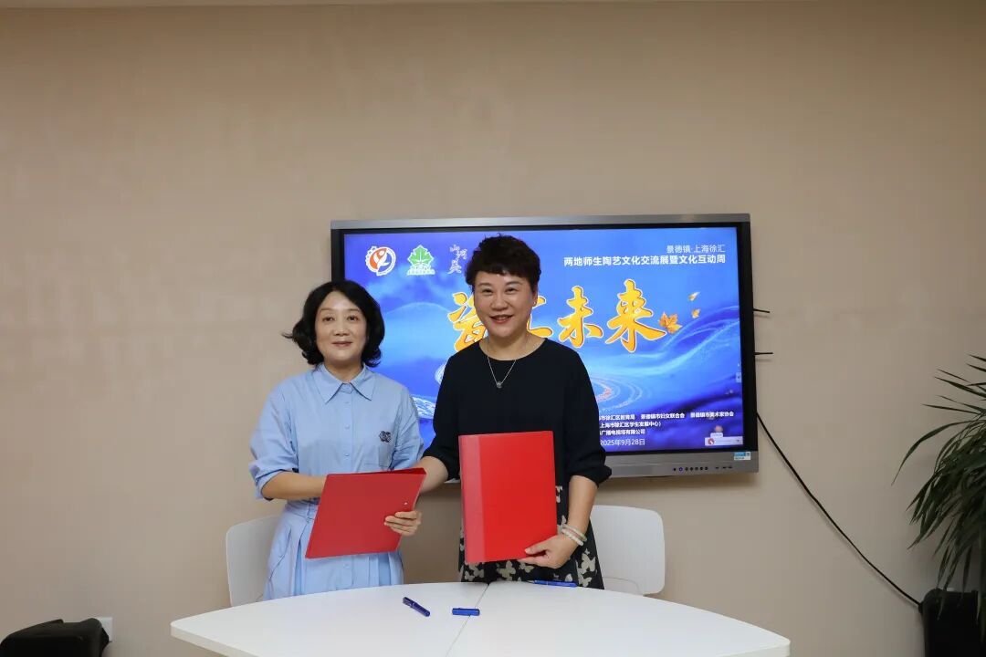 活动现场,徐汇区相关领导为黄国斌、涂海波、黄勇、韩猛华四位景德镇陶艺大师颁发了导师聘书。“这份聘书是信任,更是责任。”黄国斌表示,他们会毫无保留地把景德镇千年陶艺的精髓传下去,让文化基因一代代延续。为进一步推动两地文化交流,景德镇市妇联与徐汇区青少年活动中心签署了陶艺文化教育合作共建协议,并为合作基地揭牌。未来双方将围绕“研学互访、课程共创、展陈联动”建立常态化机制,包括组织师生赴景德镇实地研学、邀请陶艺大师来沪授课、合作举办跨地域展览等。