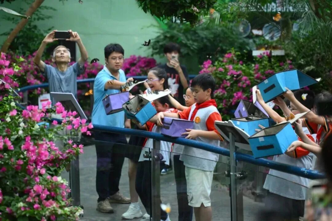 最受市民朋友欢迎的莫过于“蝴蝶放飞”了!10月1日至8日,两栖爬行馆二楼平台将设置科普讲解点,定时发放活体蝴蝶,并引导游客至蝴蝶花园参与蝴蝶放飞活动。另外,游客自主探索打卡也是一项热门活动,这也是节假日限定环节,市民朋友们可以在两栖爬行馆和科教馆门口领取探索手册,并通过学习蝴蝶展的科普内容完成知识问答,获得限定文创产品和纪念章。