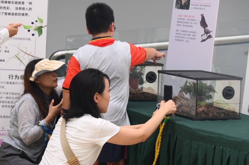 此外,今年蝴蝶展还新增了拟态活体昆虫主题展。“拟态”在昆虫界中是一种普遍且高度进化的生存策略,是自然选择力量最生动的体现。节日期间,科教馆二楼临展厅将展出拟态技术最集中的鳞翅目、螳螂目、䗛目、直翅目四大类群,包括凤蝶幼虫、眼镜蛇枯叶螳、冕花螳(兰花螳螂)、巨扁竹节虫、纺织娘等活体昆虫,通过精心设计的微景观造景,真实还原这些“拟态高手”在自然界中的隐蔽与伪装行为。