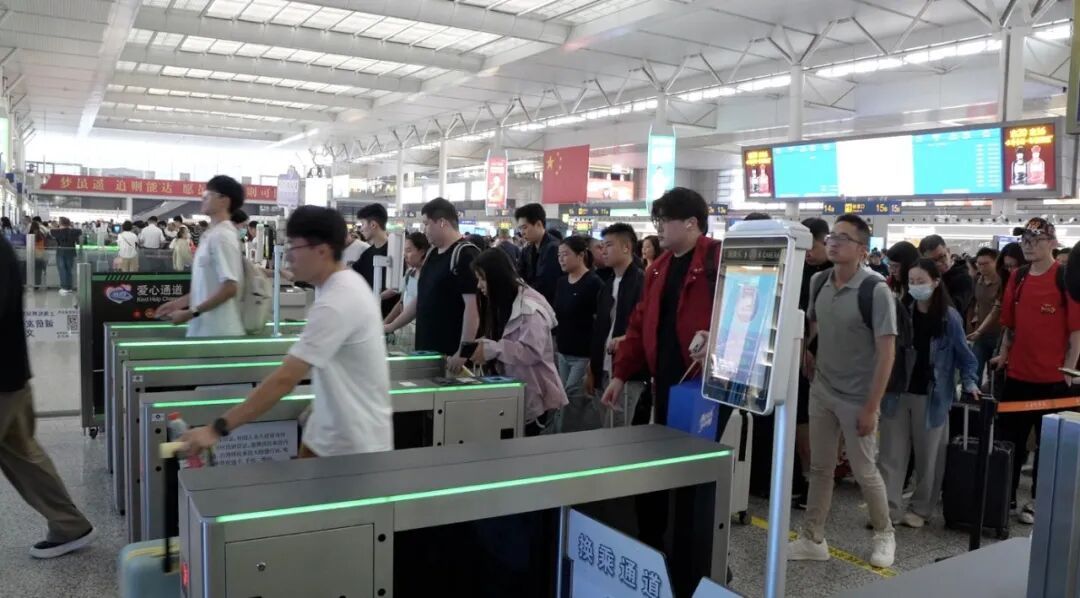 虹桥站方面介绍说,今天的这波客流以探亲游、旅游为主。“今天虹桥站预计发送旅客25.9万人次,比日常增加了6万人次左右。”虹桥火车站值班站长杨骏华补充道,“为了应对大客流,我们今天增加了临客23趟,主要前往安徽、西北、甬台温等方向。”