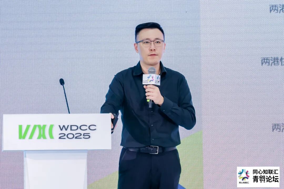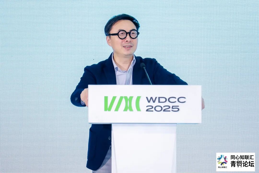 陈俊恺副教授通过演讲《未来的声光之诗》,描绘了数字媒体技术与设计融合所创造的沉浸式未来图景。他2015 年起创作自动化乐器并尝试与 AI 结合,还以八卦为灵感设计光影装置,其成果在 WDCC 开幕表演中惊艳全场。