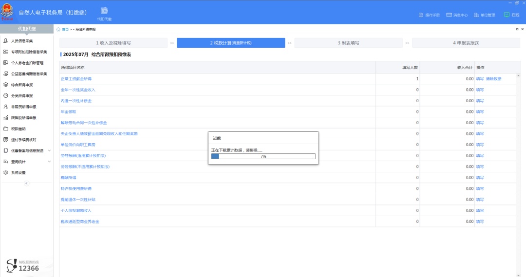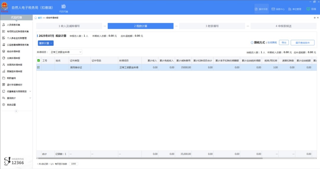 将相关数据填写完成后,返回进入【税款计算】界面,将已填写好的内容进行勾选,系统会根据填写的内容进行税款计算。