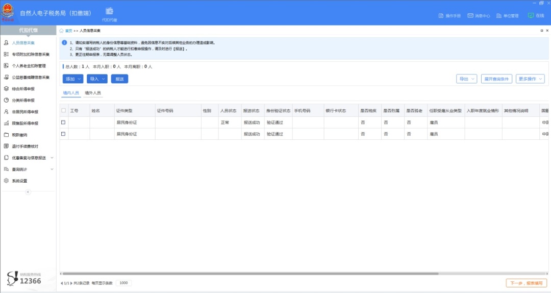 1.通过扫码或输入密码等方式,登录自然人电子税务局(扣缴端),选择【人员信息采集】,将员工信息进行填写。