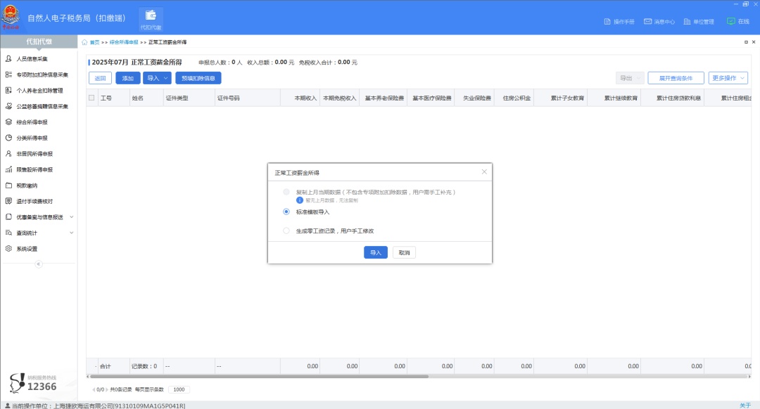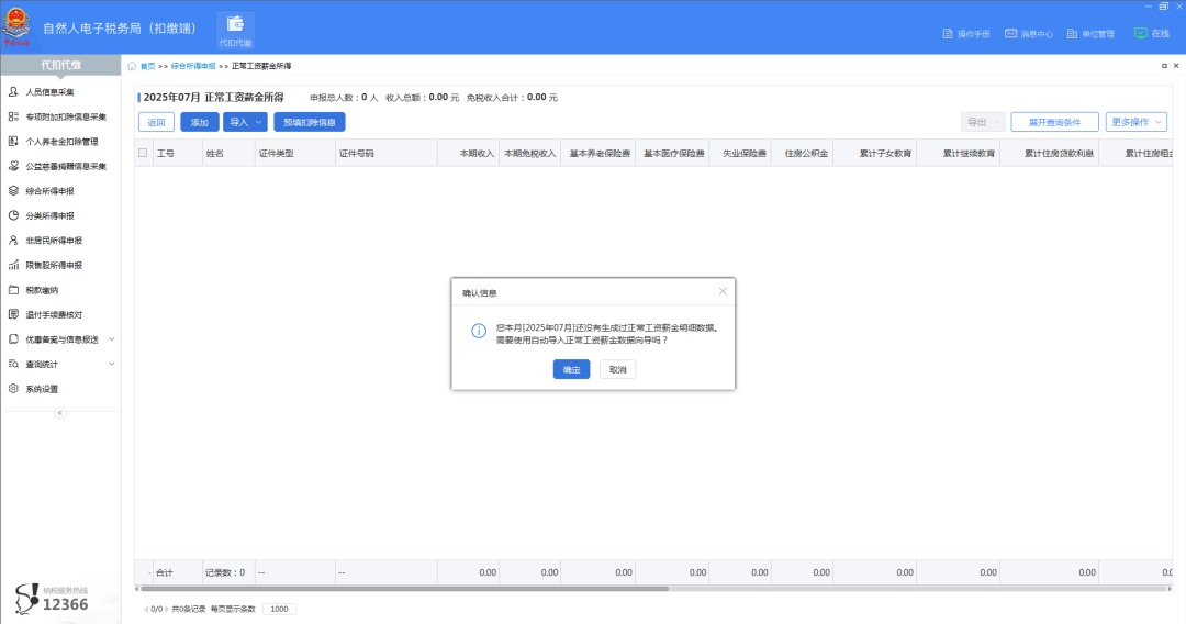 若是首次申报,则可以选择【生成零工资记录】,已录入的员工信息会自动代入,根据实际情况填写收入数据即可。