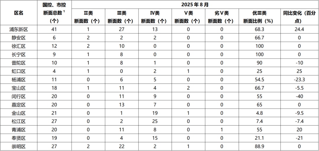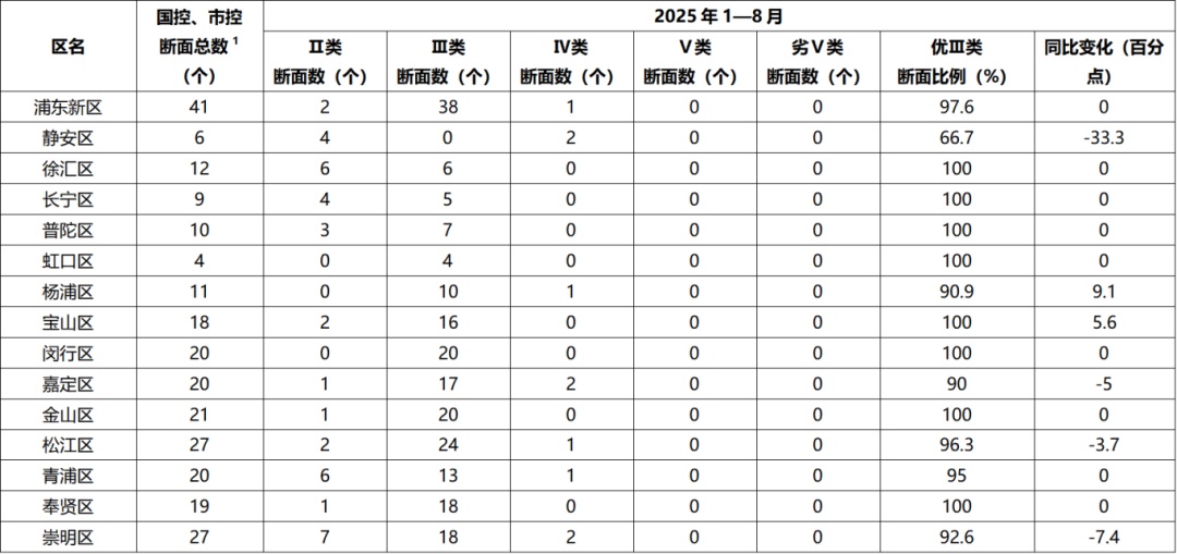 点击阅读原文,查看《2025年8月和1—8月上海市各区地表水环境质量状况》