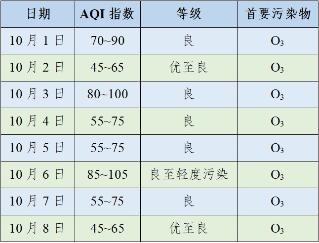 2025年国庆中秋假期期间,预计本市扩散条件较好,空气质量总体优良,其中,6日受气温回升、风速较小等不利气象条件影响,预计出现O3污染过程。1日—4日,受低压槽影响,扩散条件较好,空气质量以良为主;5日,主导东南偏东风,空气质量良;6日,气温较高,小风辐合,出现O3轻度污染过程;7日—8日,主导东北偏北风,空气质量以优良为主。
