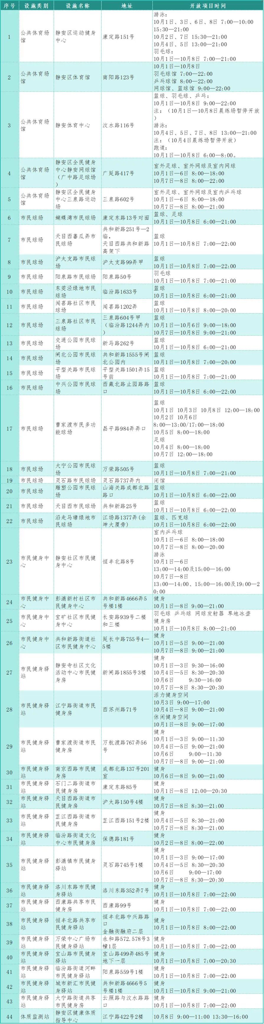 国庆假期有什么健身计划?为更好地满足广大市民健身需求,国庆假期中,静安区44处公共体育场馆向市民开放,开放项目包括足球、篮球、网球、乒乓球、羽毛球、游泳、健身等,更有体质监测可精准分析体质健康水平。
