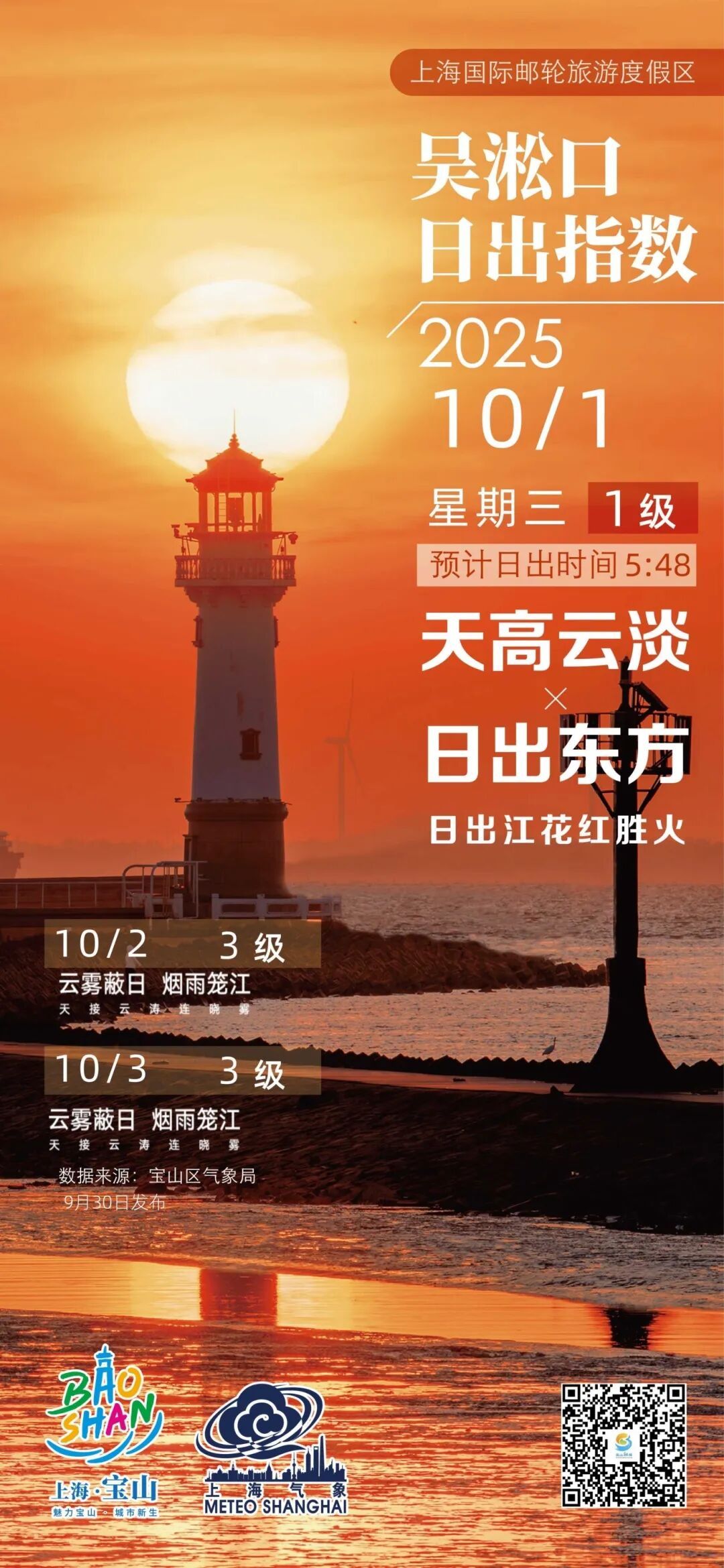 【吴淞口日出指数】10月1日1级 天高云淡×日出东方