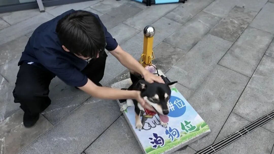 更贴心的是,“泊狗位”旁配有专门的安保人员,除了维护现场秩序,市民若有急事,还可以选择将狗绳交给安保人员享受“代客泊狗”服务。