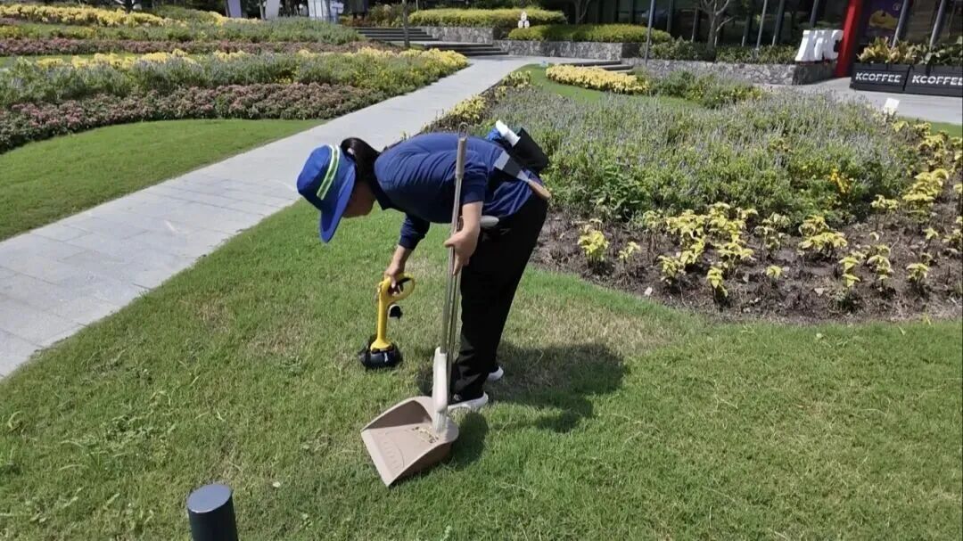 除了安全措施,该区域还配有专门的保洁人员,佩戴专用清洁剂和宠物粪便捡拾器,及时保持环境清洁。
