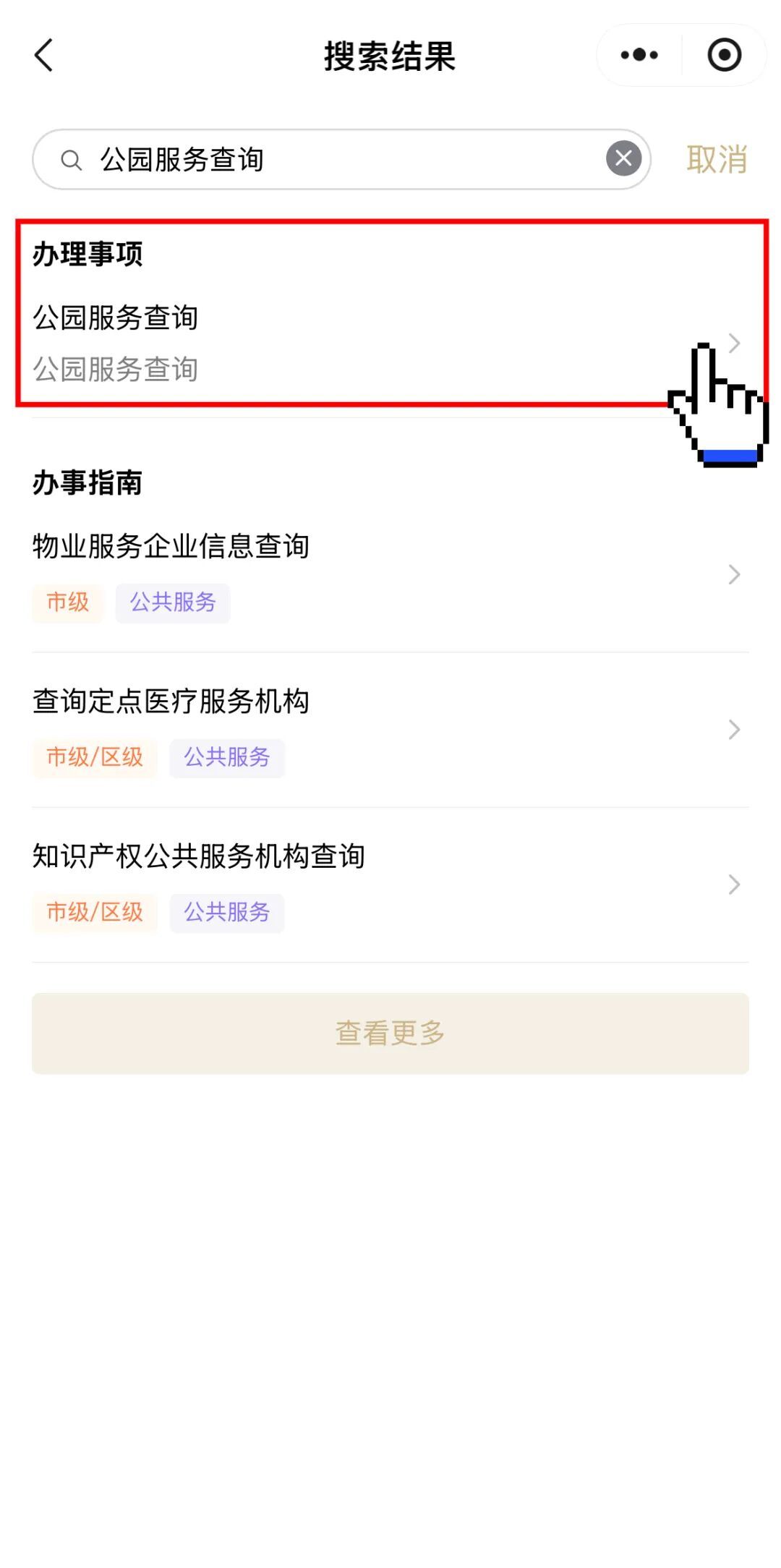 打开“随申办市民云”(APP/微信小程序/支付宝小程序),首页搜索栏输入“公园服务查询”点击进入。