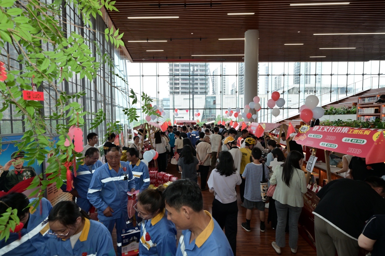 现场还设置静工文化市集,职工代表畅享便民咨询、手作体验、工惠乐购、游戏互动等丰富内容,感受节日的欢乐氛围。