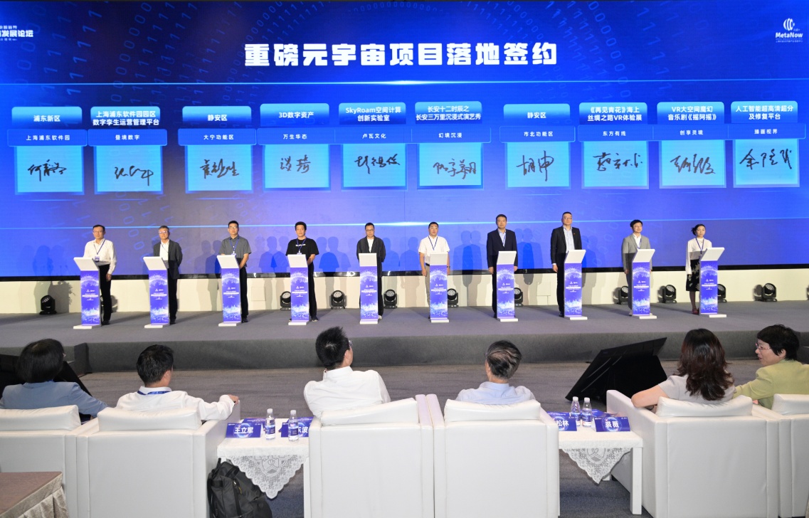 在主论坛元宇宙重点平台发布环节,静安区企业博新全宇宙发布大空间数字内容创制平台。各区元宇宙企业签约环节,市北功能区与东方有线、创享灵境、臻画视界签约,大宁功能区与万生华态、博新全宇宙、幻境沉浸签约。