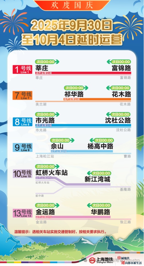 提升保驾力度满足客流出行 9月30日至10月4日六线延时运营