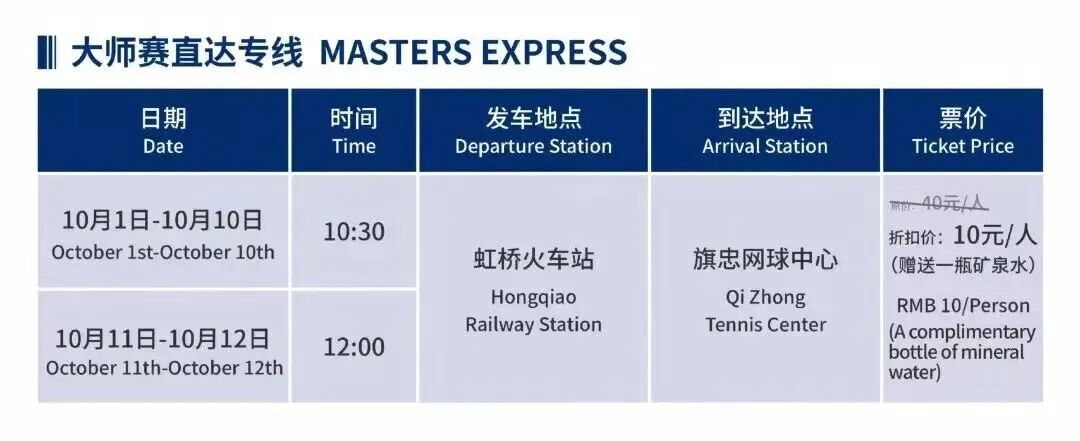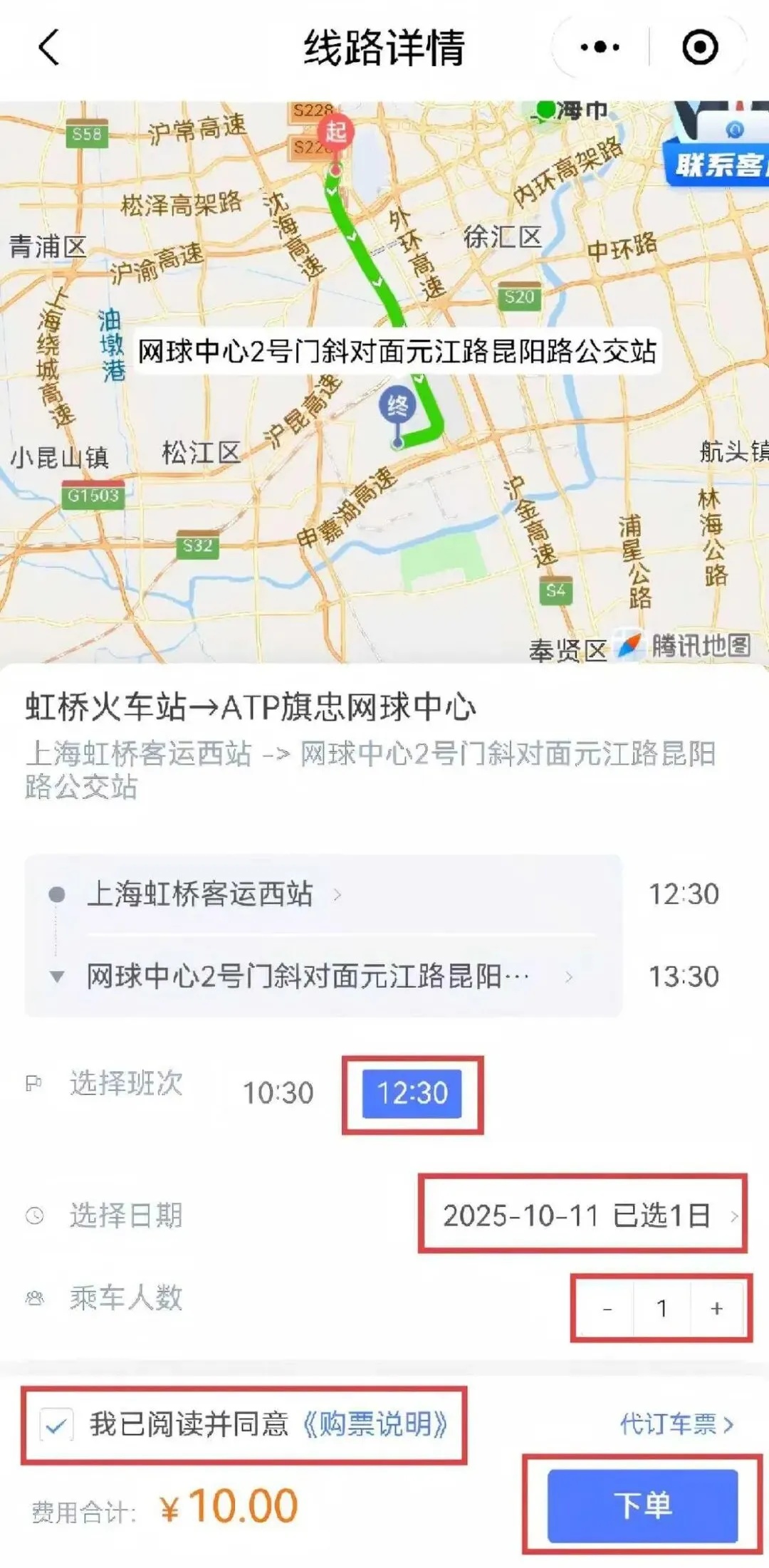 2025上海ATP1000网球大师赛于9月29日至10月12日在上海旗忠网球中心开赛。据闵行区交通委消息,为方便外省市观众观赛,强生致行开通虹桥火车站至旗忠网球中心的大师赛直达专线,全力提升观众出行体验。