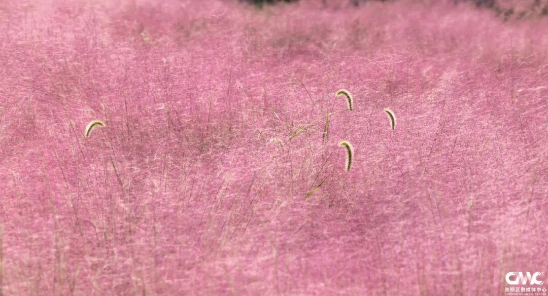 一位游客一边拍照一边跟记者说:“这是我第二次来崇明看粉黛乱子草,真的很美。明珠湖也因为粉黛乱子草变得更有艺术氛围了。”