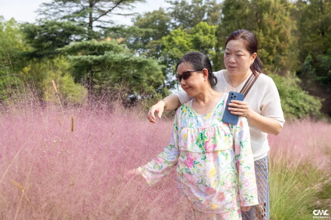 为方便游客近距离观赏和拍照,景区特地在粉色花海中开辟出一条小路,游客可沿小径深入花丛,沉浸式感受这份秋日惬意。目前,粉黛乱子草处于最佳观赏期,花期将持续至11月中旬,感兴趣的市民千万不要错过了。