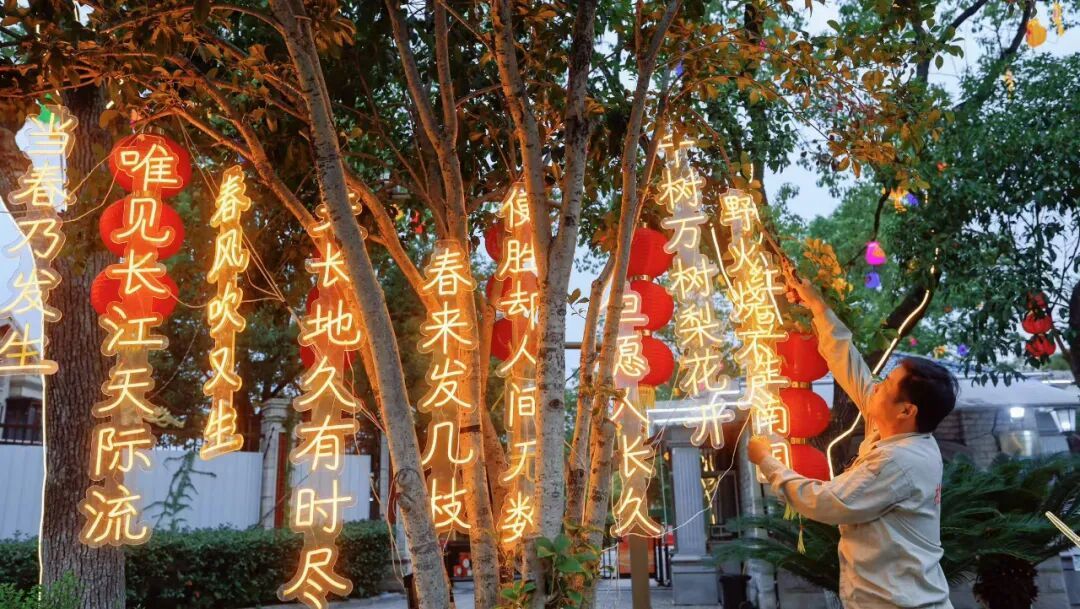 “我们希望通过这次布置,为业主打造喜庆的节日环境,同时,也能让大家在潜移默化中感受传统文化的魅力。”松开物业公司党支部书记陆向阳介绍,此次布置聚焦国风元素,从装饰图案设计到色彩搭配选择,均围绕传统文化中的吉祥寓意展开。