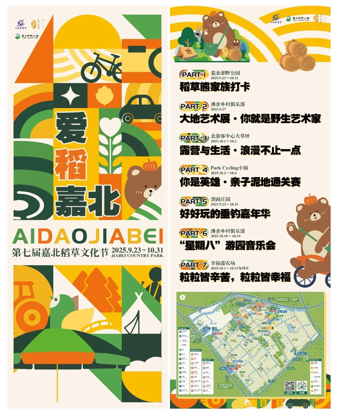 9月23日至10月30日,嘉北郊野公园第七届稻草文化节火热上演。稻浪与蓝天,稻香与秋风,稻草雕塑与奇趣活动将呈现一场乐趣无限的大地奇幻之旅。