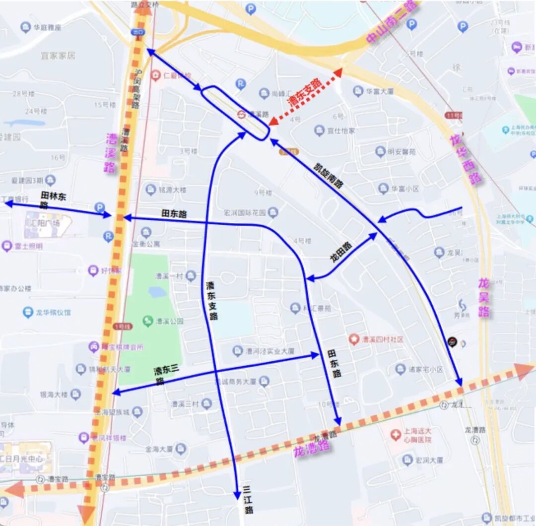 曾经的漕河泾街道北部片区虽被漕溪路、龙华西路等主干道环绕,但因缺乏贯通性支路,陷入了“内外不畅”的困境。居民往返地铁不得不绕行十几分钟,车辆也只能挤向早已饱和的漕溪路与龙漕路,高峰时段拥堵成为常态。而漕东支路作为地块内唯一贯通性良好的支路,及时且精准地补齐了路网短板。