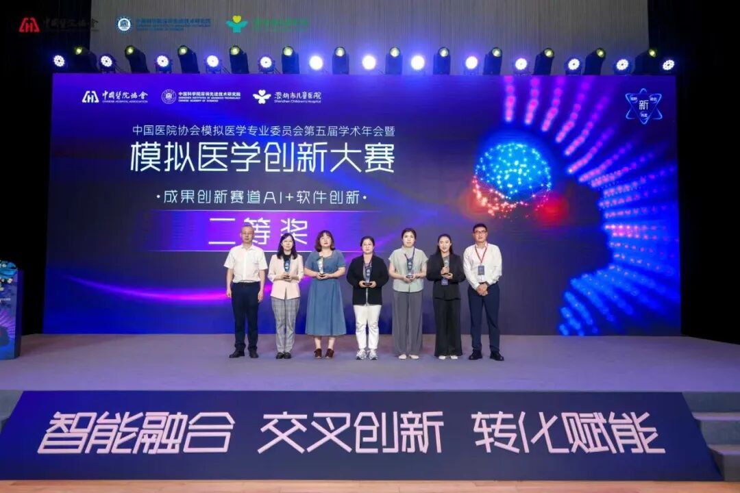 本次大会同时举办2025模拟医学创新大赛,大赛自2025年4月启动,设立“成果创新赛道”和“技能创新赛道”。成果创新赛道面向全国医院、医学院校、科研机构及企业,包括AI+技术创新组、硬件设备创新组、科普教育创新组三个类别,比赛由初赛、网络投票、现场比赛三个环节构成。经过初赛遴选,现场共有96支队伍同台竞技。其中“AI+技术创新”组参赛作品涉及AI辅助诊断、医学图像处理、大数据模型构建、智能病例分析、临床思维工具、数字化课程等,共45支队伍进入决赛,比赛竞争激烈,设特等奖1名、一等奖3名、二等奖6名、三等奖15名,我院“妇产医学仿真教学乐伴联盟”教学团队荣获成果创新赛道“AI+技术创新”二等奖。