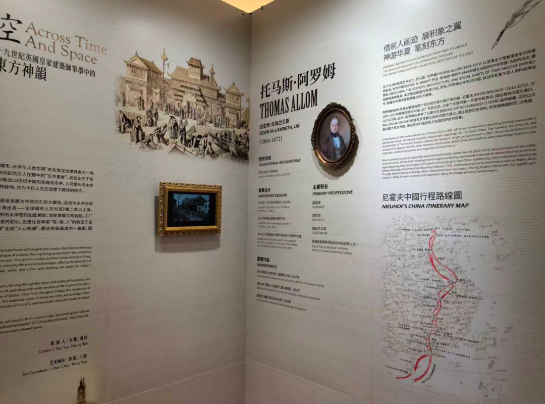 “阿罗姆从未到过中国,却用画笔‘神游华夏’。”策展人朱赟在展厅内为观众讲解时,指着一幅北京街景版画说道。原来,阿罗姆的创作灵感源自荷兰旅行家约翰·尼霍夫的游记、英国马戛尔尼使团画师威廉·亚历山大的速写,以及传教士利玛窦的著作。他以浪漫主义笔触,将二手资料转化为诗意画卷,既保留了中国建筑的飞檐、斗拱等元素,又融入欧洲绘画的透视技法,让现场观众连连惊叹:“原来19世纪西方人眼中的中国是这样的!”