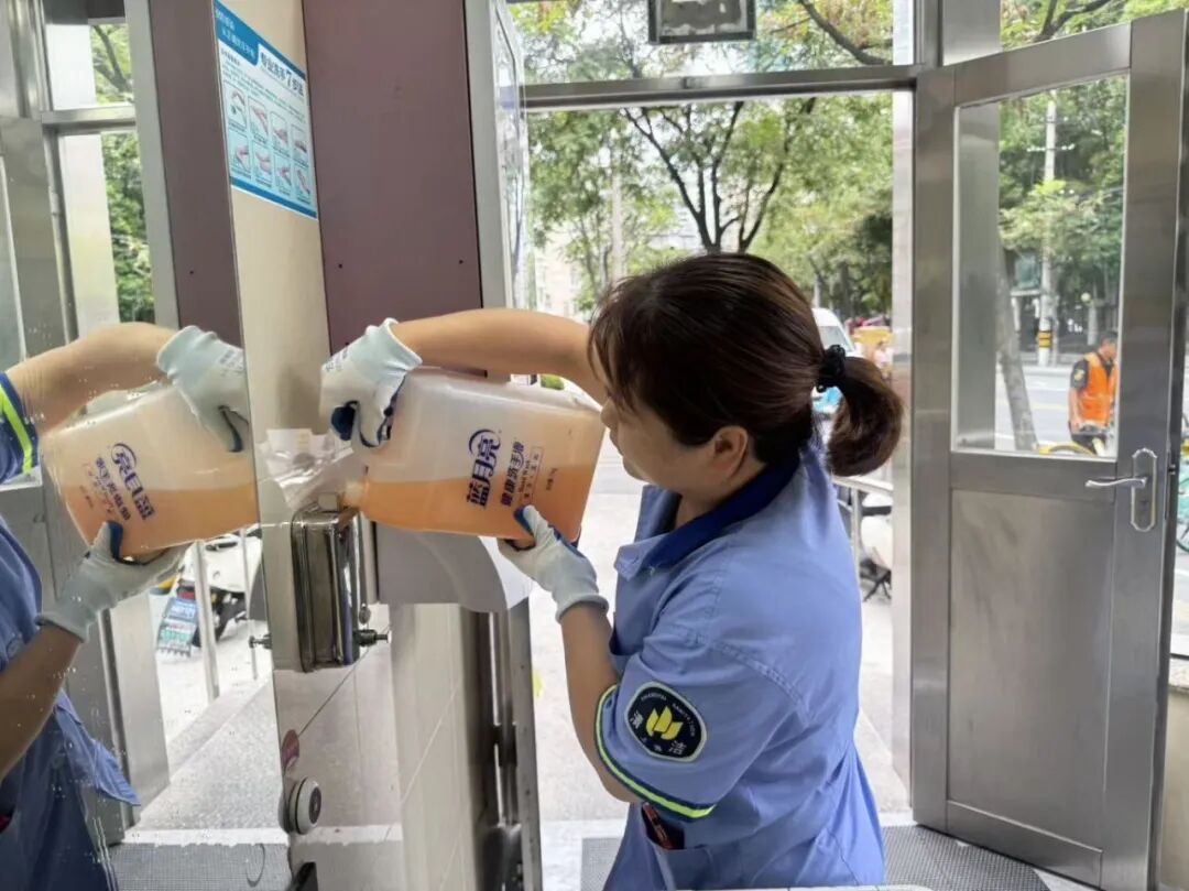 开展深度保洁,对公厕进行全方位清洁消杀,重点清理卫生死角,优化公厕内外环境。