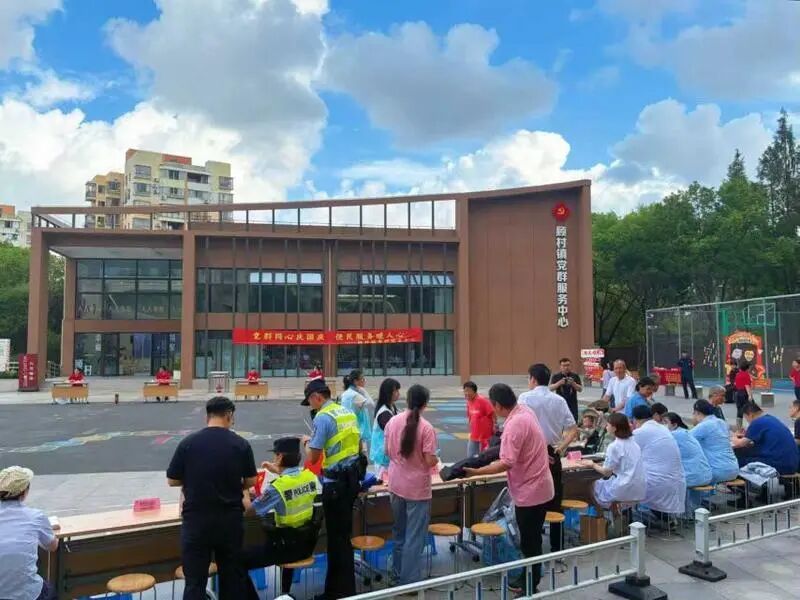 多方联动,实事惠民。顾村镇党群服务中心联动镇总工会、镇社区事务受理服务中心等职能部门,联合复旦大学附属华山医院宝山院区、菊泉新城社区卫生服务中心、宝山公安分局刘行派出所、上海城投水务(集团)有限公司制水分公司泰和水厂等区域化党建单位、九大网格的“幸福合伙人”及党群志愿者,搭建起“一站式”便民服务平台。