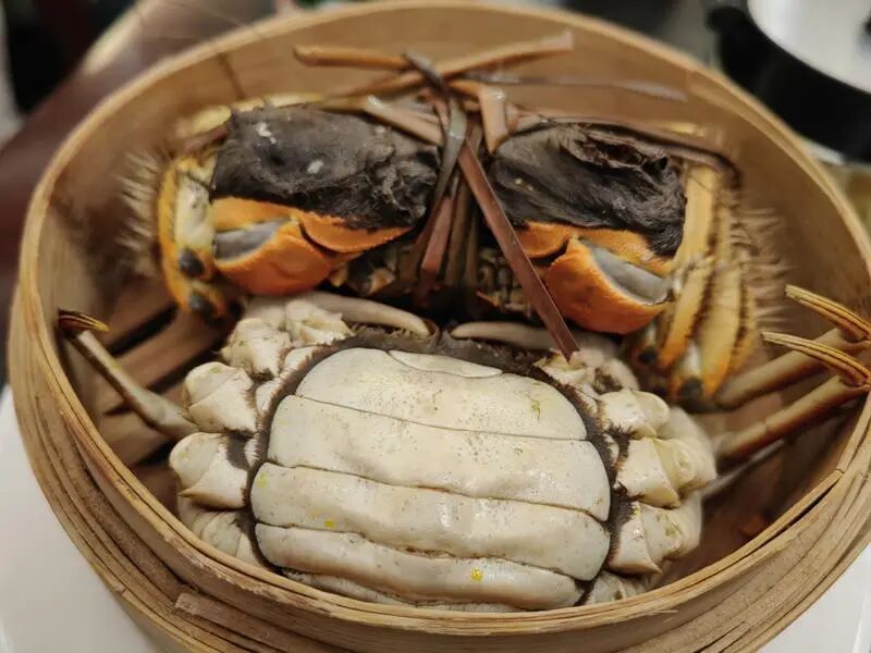 当天送达的大闸蟹经过厨师团队的精挑细选才能送上餐桌。王浩告诉记者,现在的大闸蟹主要是尝鲜,等到天气再凉快些,蟹的品质会更好。“今年除了大闸蟹之外,还新增了蟹菜,蟹汁黄鱼柳以及蟹粉烤酥盒,中西合璧,轮流供应”。