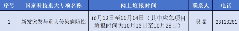 根据《国家卫生健康委科教司关于发布新发突发与重大传染病防控国家科技重大专项2026年度项目申报指南的通知》有关要求,为做好本市国家科技重大专项2026年度项目的申报及推荐工作,特通知如下:
