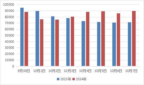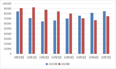 ▲G60沪昆高速大蒸港桥段 G60沪昆高速杭州方向的大蒸港桥段是S32申嘉湖高速与G60杭州方向主线车流的交汇处,同时又叠加了后方大港立交G1503内外圈合流至G60沪昆高速杭州方向的车流,可能形成出沪高峰。 ▲历年G60沪昆高速国庆假期 进上海车流量统计表 ▲历年G60沪昆高速国庆假期 出上海车流量统计表 松江警方建议小伙伴们合理选择出行时间和路线,理性出游,错峰出行!自驾出游前检查好车辆,如果高速上发生事故或特殊状况,请“车靠边、人撤离、即报警”。