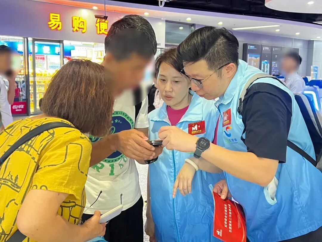 在地铁出口处,一位市民神情焦虑,来回张望。她本要接远道而来的家人,却因地下信号中断,无法联系对方。仅凭一张家人发来的图片,她判断应在南3出站口等候。闵行区牙病防治所的志愿者吴靓与李子娟察觉到了她的不安,主动上前询问。李子娟轻声安抚她的情绪,而身为党员志愿者的吴靓,凭借丰富经验,迅速确认正确的接站方向,并指引她前往。不久后,当市民顺利接到亲人,两位志愿者才松了一口气。即使在信号失联的时刻,爱从未“离线”。这一刻,志愿者的守候,让焦灼的等待化为安心的重逢。