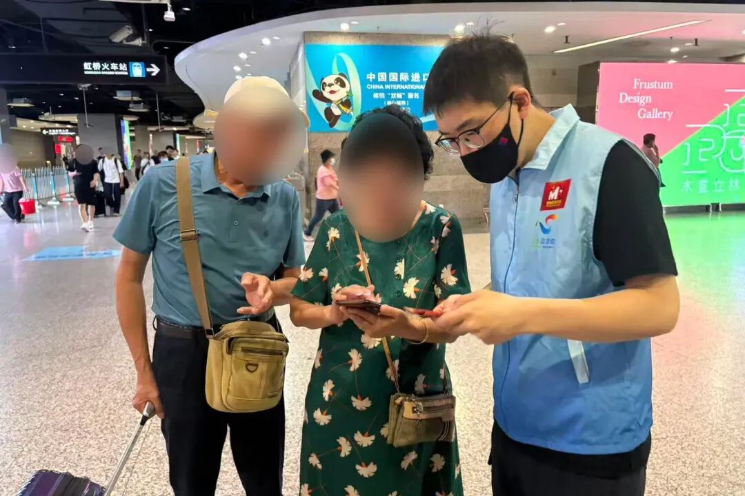 “我在虹桥,但不知道具体在哪儿,女儿还在等我一起坐高铁……”一位母亲握着手机,语气中满是焦急。闵行区中心医院的志愿者李淯隆一边安抚她的情绪,一边接过电话,与电话那头的女儿清晰沟通,细致描述地标、指示牌、周边商铺,一步步引导她确定母亲所在位置。当母女俩相聚紧紧相拥时,这一刻,志愿者不仅仅是“指路人”,更是亲情的“连线人”。