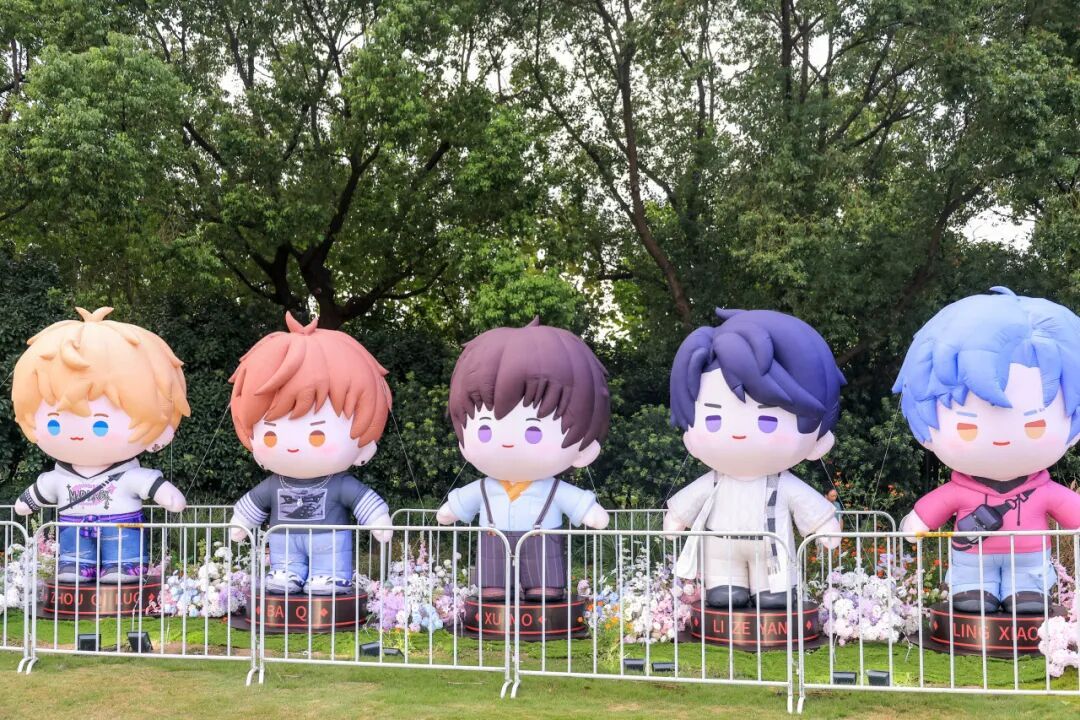 近日的黄兴公园,除了散步的居民,还多了不少二次元迷,他们特地组团而来,只为打卡园内新增设的恋与制作人【流影恋语】互动打卡装置。