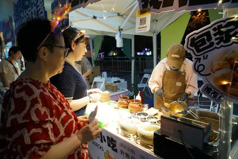 森林市集里,市民们三五成群,或是享受着特色小吃满足味蕾,或是买到了独具匠心的文创好物,抑或是提上了生机盎然的花艺绿植回家,而趣味十足的科技互动自然也不能错过……