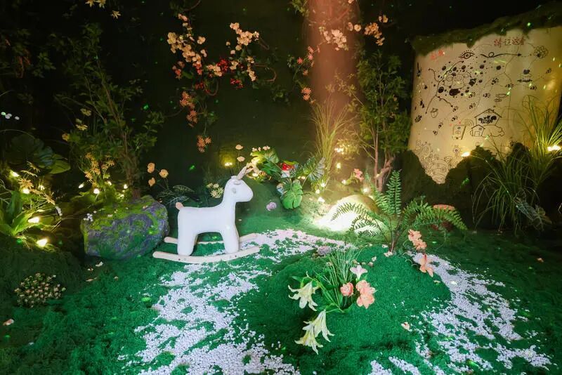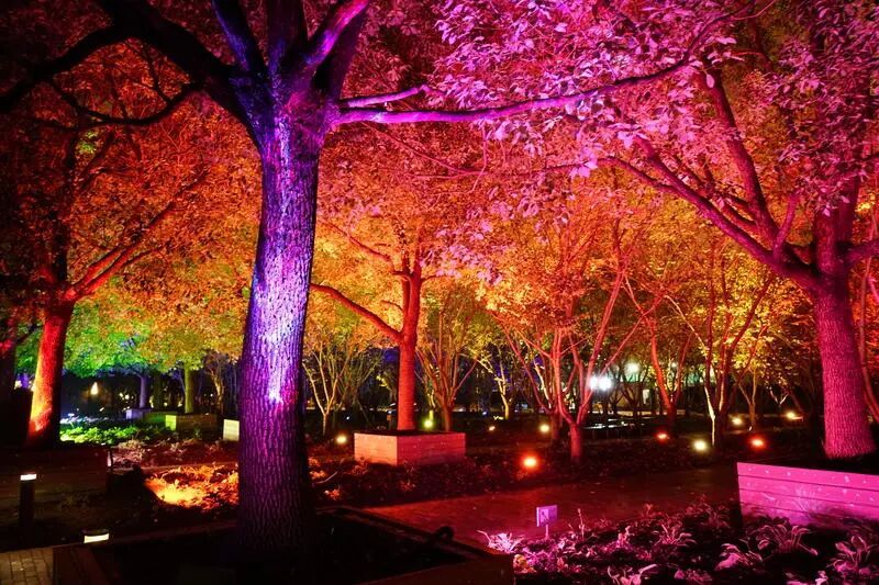 以琴键为灵感的“音跃森林”,则演绎着唯美的音乐灯光秀。