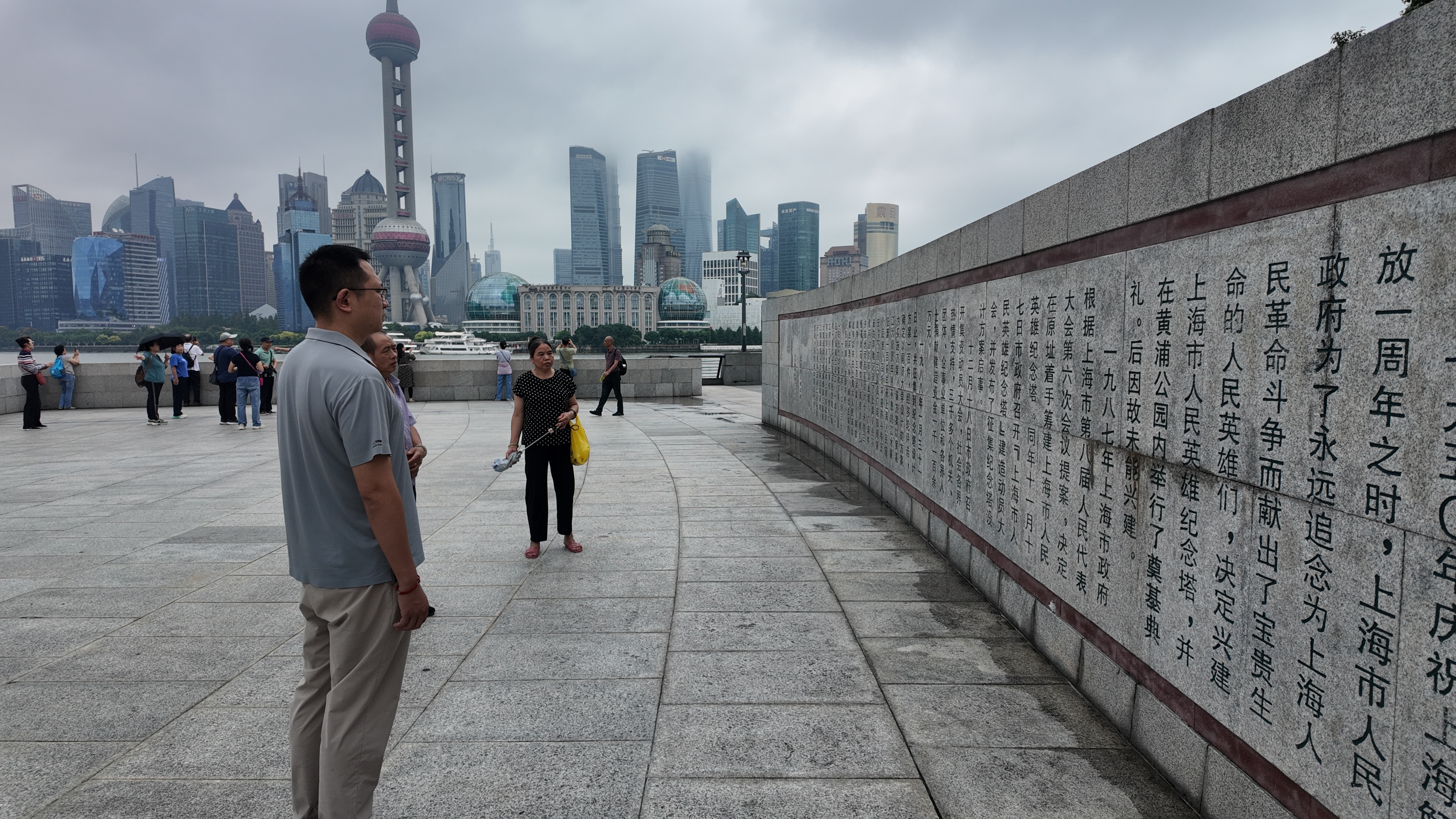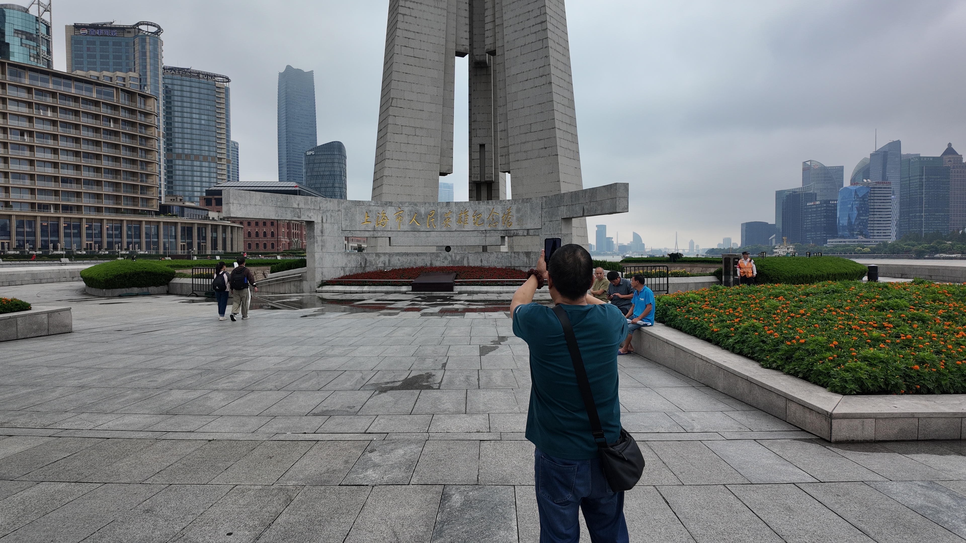 中午时分,雨势渐止,黄浦公园内的上海市人民英雄纪念塔下人头攒动。尽管没有正式的仪式,但现场肃穆而庄重的氛围却笼罩着整个空间。当市民游客们缓缓靠近纪念塔时,不少人默默地凝望着周围的纪念碑,心中对英雄们的敬意如潮水般涌起。许多人自发脱帽默哀,以最质朴的举动,表达对已逝英雄们的深深怀念与感激。大家或静静伫立,深情凝视着纪念塔;或轻轻拍照,记录下这神圣的时刻;又或是漫步其间,细细品味这份庄严。每一个人都发自内心地隆重瞻仰,用自己的方式默默地向英雄们致敬,将对烈士们无尽的感激之情融入每一个细微的动作之中。