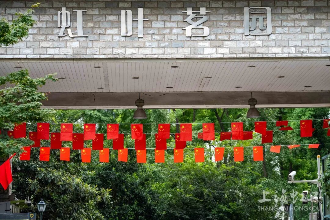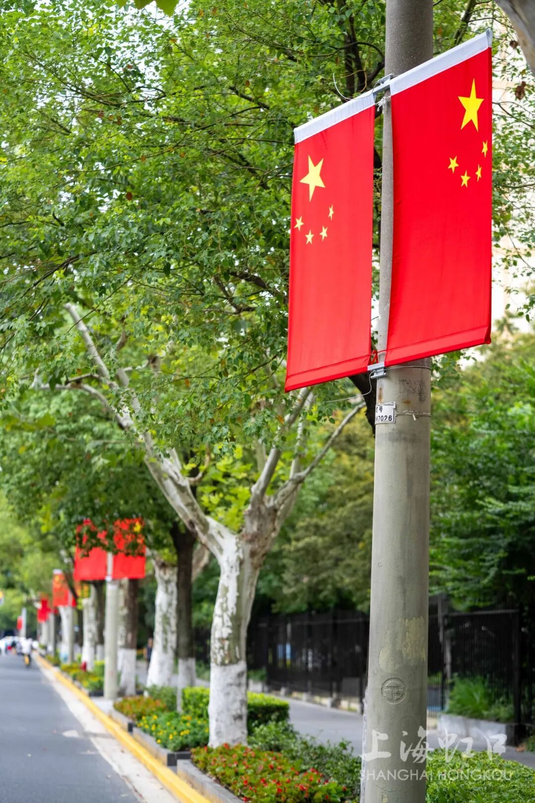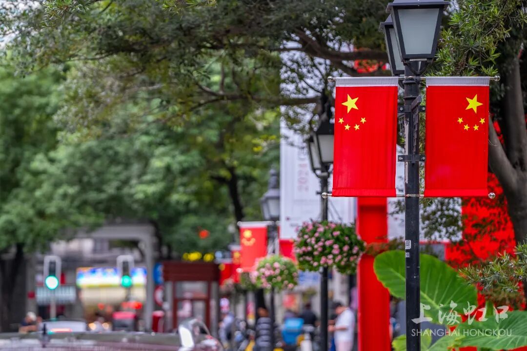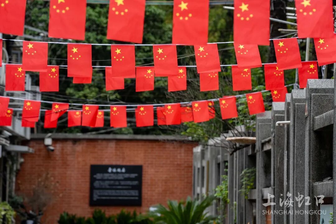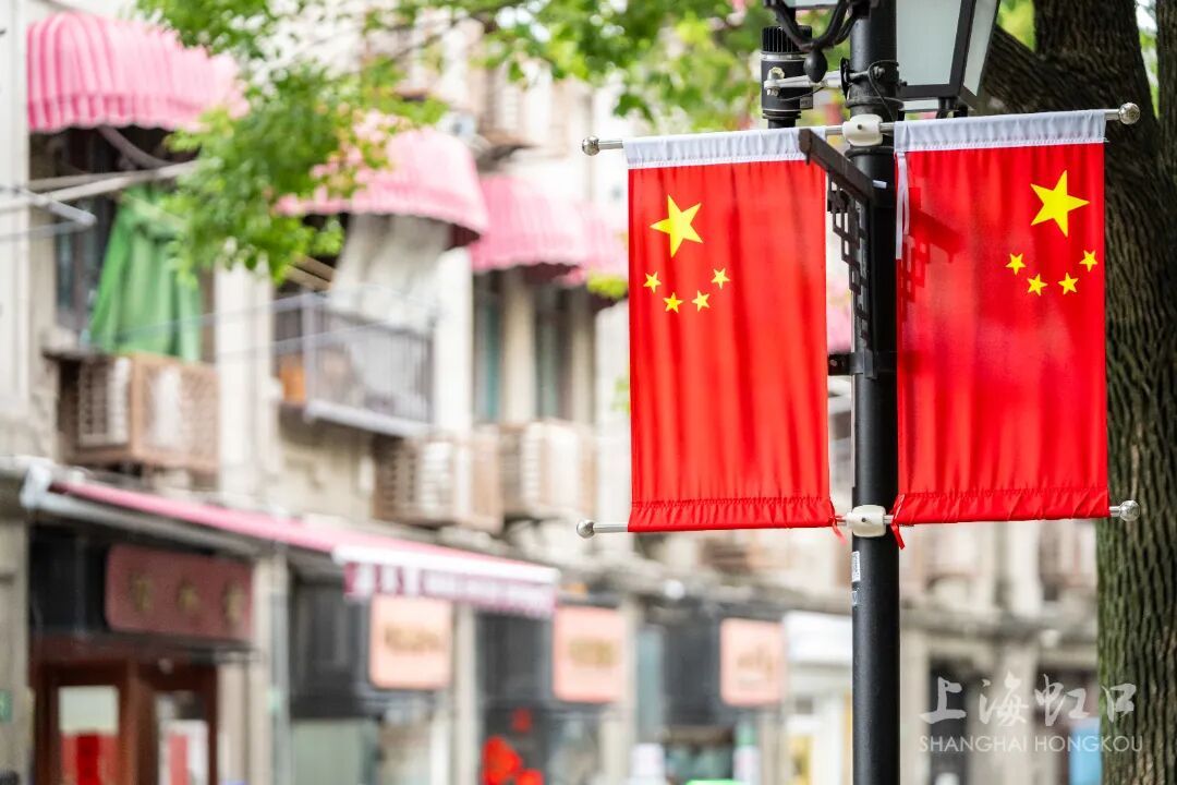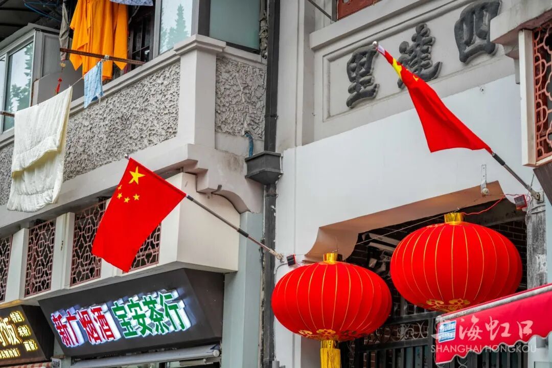 国庆期间,“五星红旗进万家”活动又来到了虹口市民的身边。虹口的每一处角落都飘扬着耀眼的中国红。商铺门前国旗高扬,路边灯杆上红旗串联,社区的公共长廊、单元门口亦缀满飘扬的五星红旗,每一面旗帜都承载着对祖国的深情,将节日的喜悦洒满街头巷尾。