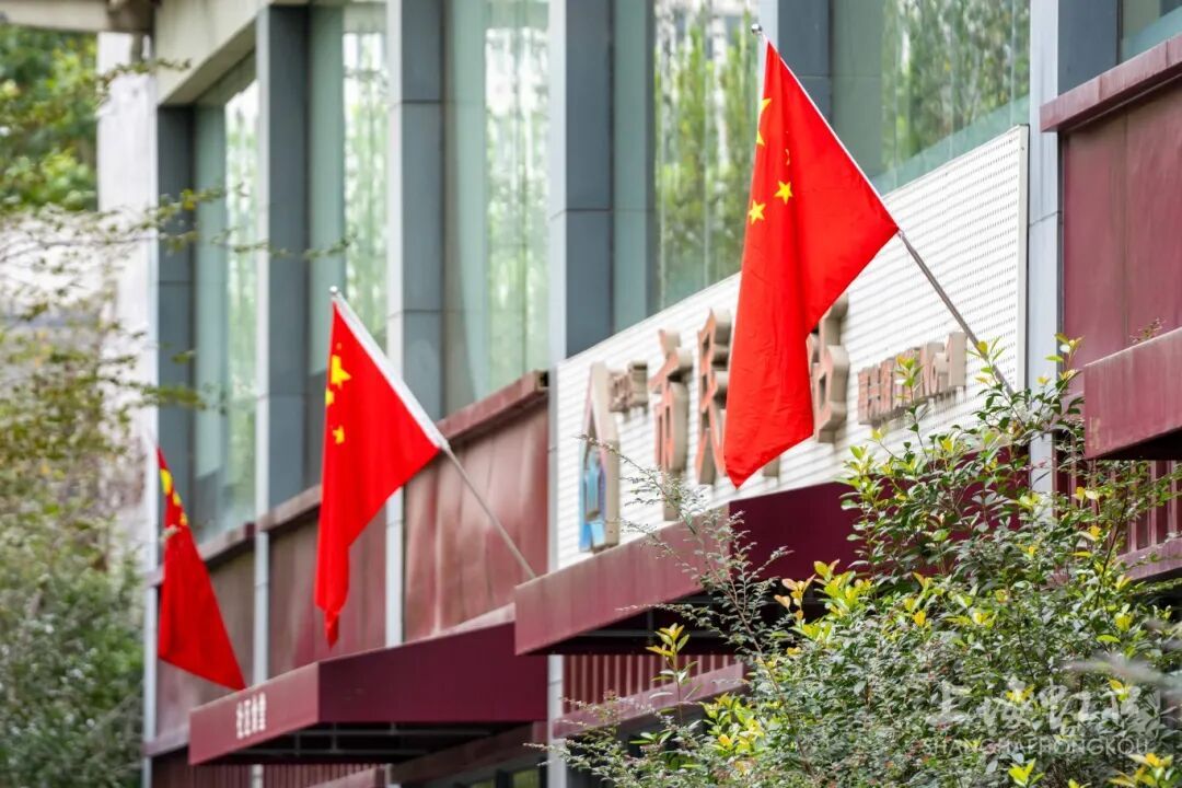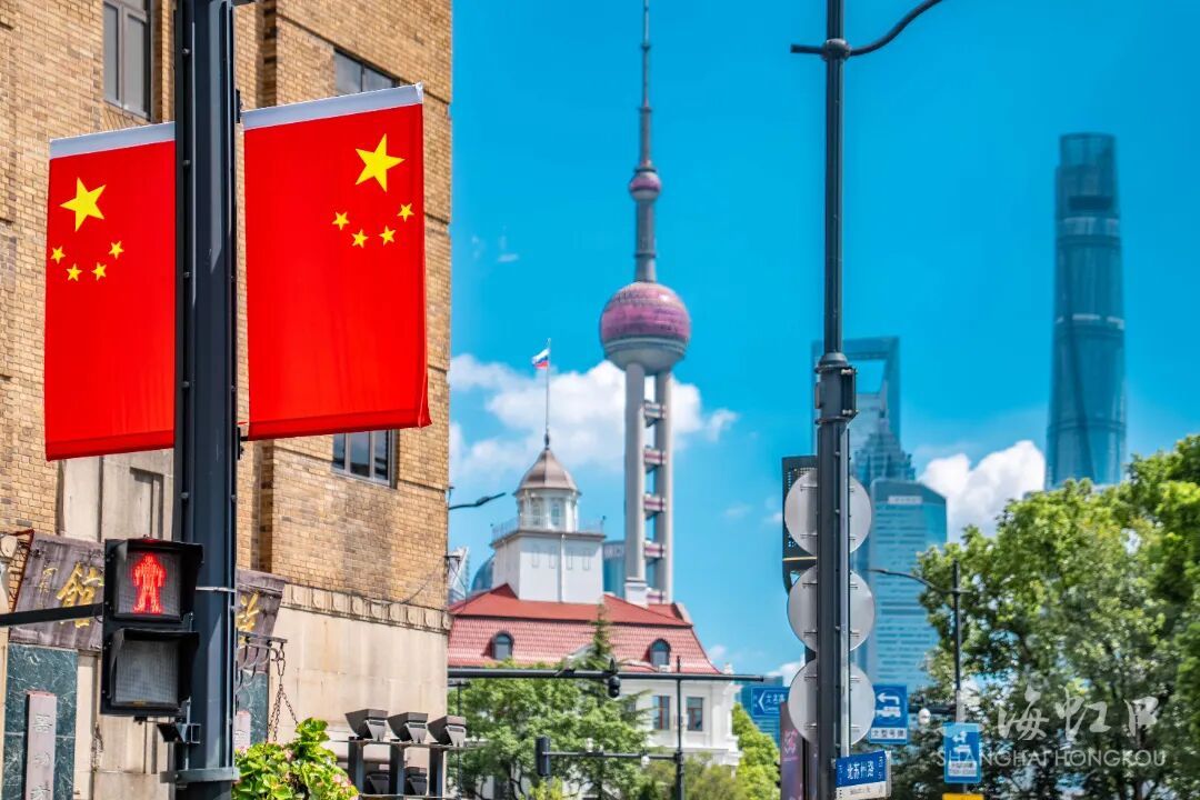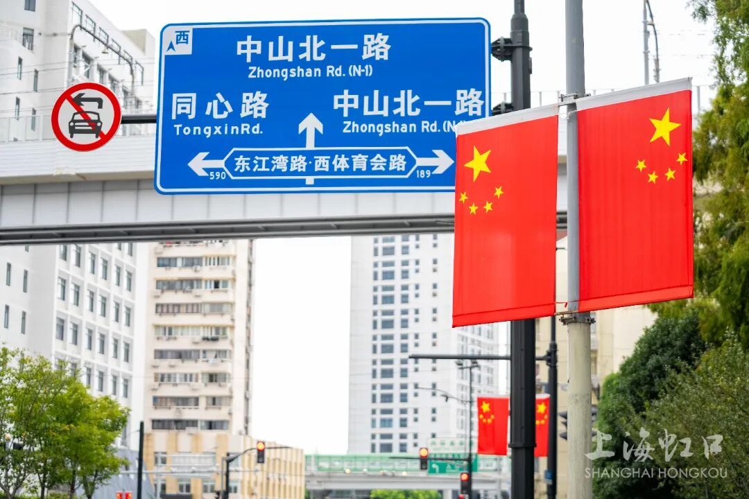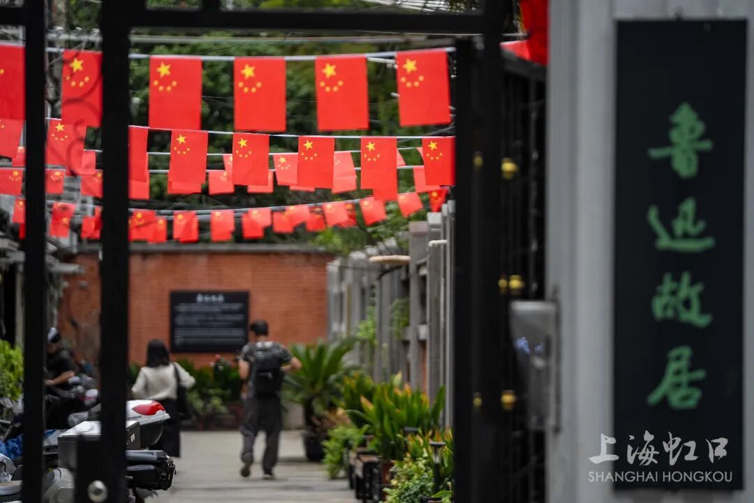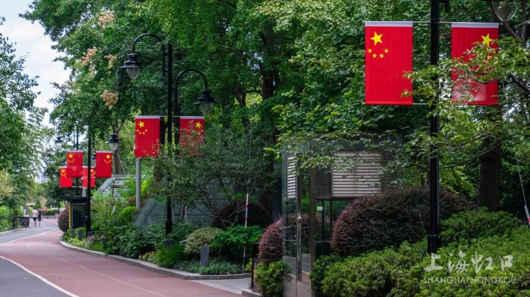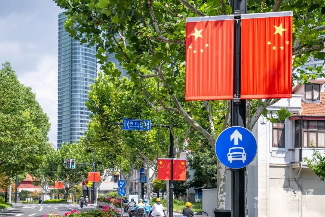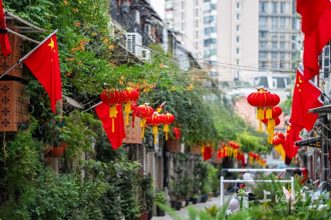 国庆期间,“五星红旗进万家”活动又来到了虹口市民的身边。虹口的每一处角落都飘扬着耀眼的中国红。商铺门前国旗高扬,路边灯杆上红旗串联,社区的公共长廊、单元门口亦缀满飘扬的五星红旗,每一面旗帜都承载着对祖国的深情,将节日的喜悦洒满街头巷尾。