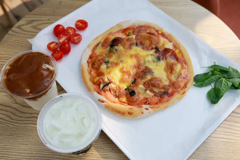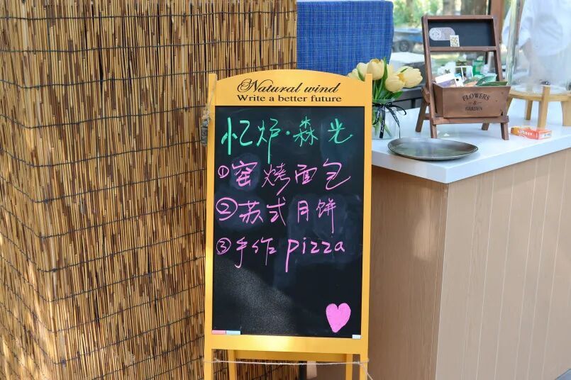 面团“变身”厚薄均匀的饼底,随后铺上番茄酱、撒上芝士,待饼底铺满配料,烘焙师将其滑入预热好的窑炉。片刻,窑炉便飘出浓郁的香气,麦粉的清甜、芝士的奶香、番茄的酸甜交织在一起,混着淡淡柴火烟熏味,在玻璃房里弥漫开来。“香!太香了!”刚出炉的披萨香味四溢,芝士拉丝的瞬间引发阵阵惊叹。这正是“忆炉·森光”主打的“沉浸式体验”——不仅提供现烤披萨、面包,更开设系列烘焙课程,从揉面、发酵到铺料、入炉,专业烘焙师全程指导。