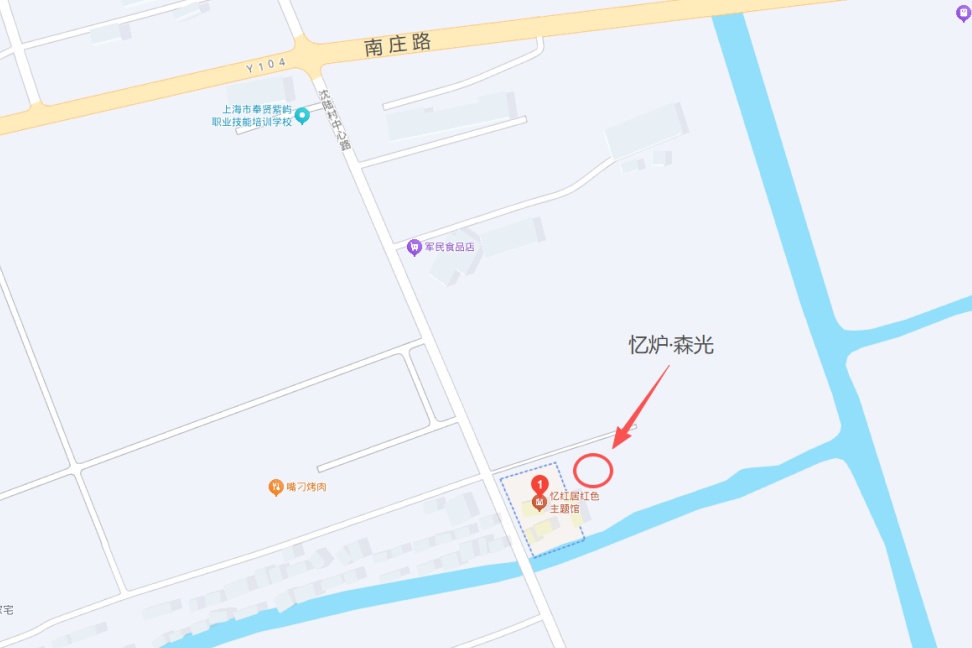 忆红居·红色主题馆(南桥镇沈陆村军民202号)东侧20米。